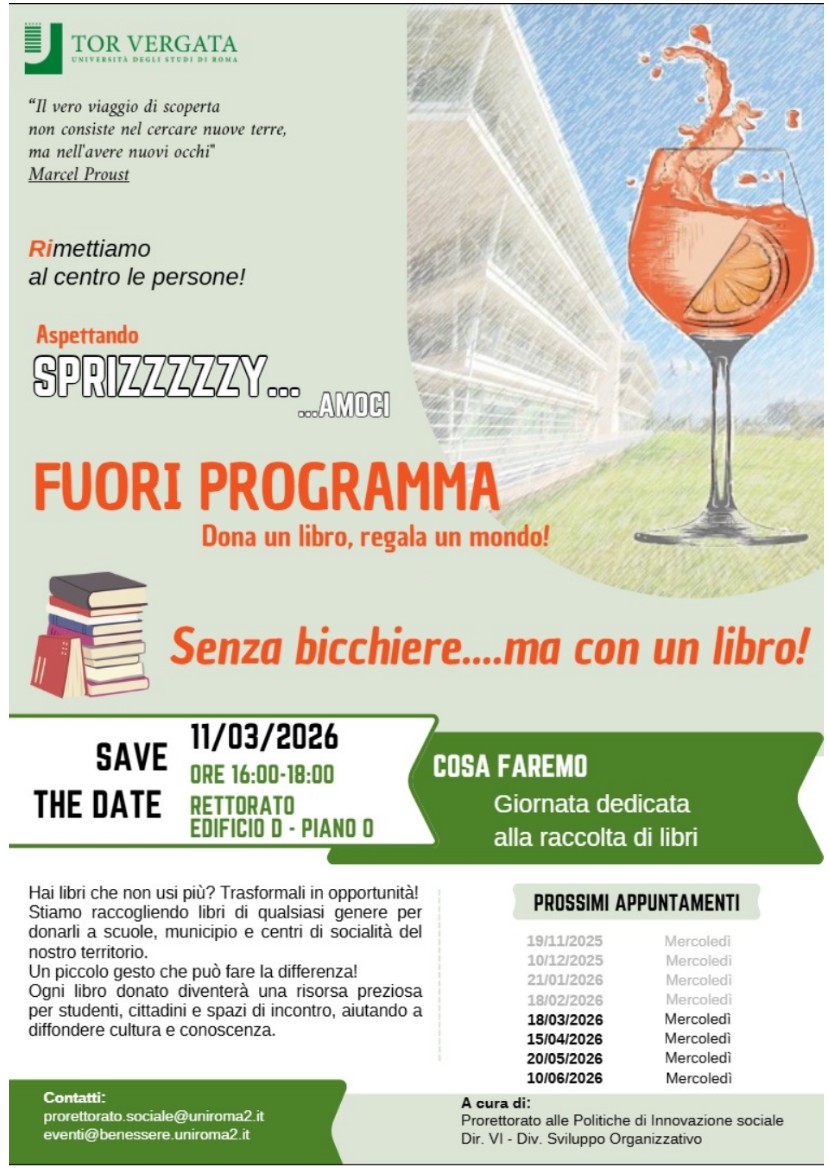 "Fuori programma. Dona un libro, regala un mondo!" - 11 marzo 2026 dalle 16:00 alle 18:00 - Rettorato Edificio D - Piano 0